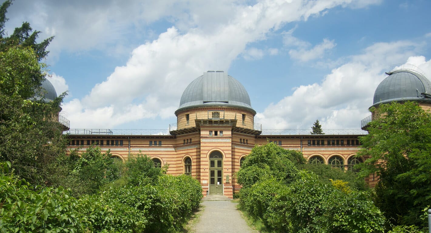 Abschließend ging es am Donnerstag (06. Juli 2017) nach Potsdam in den Albert-Einstein-Wissenschaftspark auf dem Telegrafenberg. Dort besichtigten wir neben den Instrumenten für die weltweit älteste Serie zusammenhängender Wetterdaten den Einsteinturm, das Gebäude für den großen Refraktor (ein riesiges Linsenteleskop) und historische Gebäude weiterer Institute. Übrigens beherbergt der futuristisch anmutende, von Erich Mendelsohn in den Jahren 1919 bis 1921 errichtete Einsteinturm ein Sonnenteleskop. Das Teleskop wurde eigens zur Erforschung der Sonne und zur Bestätigung der allgemeinen Relativitätstheorie Einsteins erbaut und ist bis heute in Betrieb.